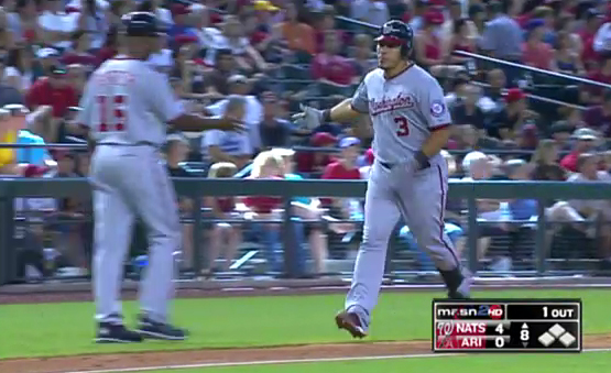 In the eighth, Arizona reliever Esmerling Vasquez hit Danny Espinosa with a clearly intentional fastball (watch it here), bringing Werth to the top step of the dugout with a look that said he wanted nothing more than one more provocation to charge the mound.