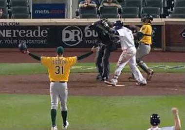It started on Wednesday, when Mets second baseman Justin Turner was hit by a pitch with the bases loaded in the 13th inning, driving home the winning run against the A’s. The problem with the play, as far as the A’s were concerned, was that Turner made no effort to avoid the pitch, which barely grazed his jersey. (Watch it here.)