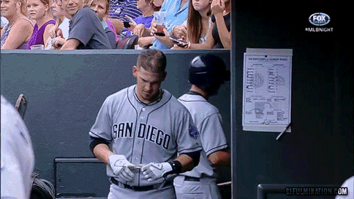 If you think those homers showed composure, they were nothing compared to the rookie’s reaction to the silent treatment he received in the dugout following his first longball. Faced with a shortage of actual teammates to congratulate him, the guy high-fived imaginary Padres instead. (Watch the whole thing here.)