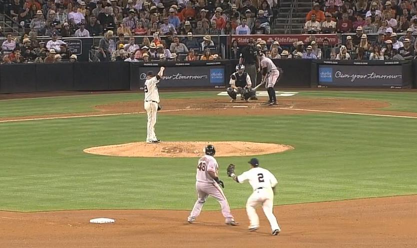 After Pablo Sandoval doubled with two outs in the top of the fifth, Padres shortstop Evreth Cabrera ended up with the ball, and while nobody was watching, tucked it away in his glove. Sandoval, preparing for the ensuing pitch, took his lead off second—and Cabrera pounced.