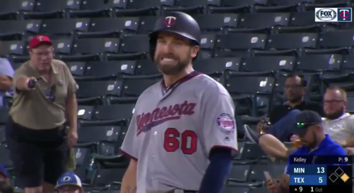 The setting: Minnesota leads the Rangers 13-5 in the ninth. With one out and nobody on, Texas reliever Shawn Kelly goes 3-0 on Twins right fielder Jake Cave. Cave is feeling good; he’s already punched an RBI double to right field and walked on the night, and has scored two runs. In a season short of personal highlights for him, this has been a good game.