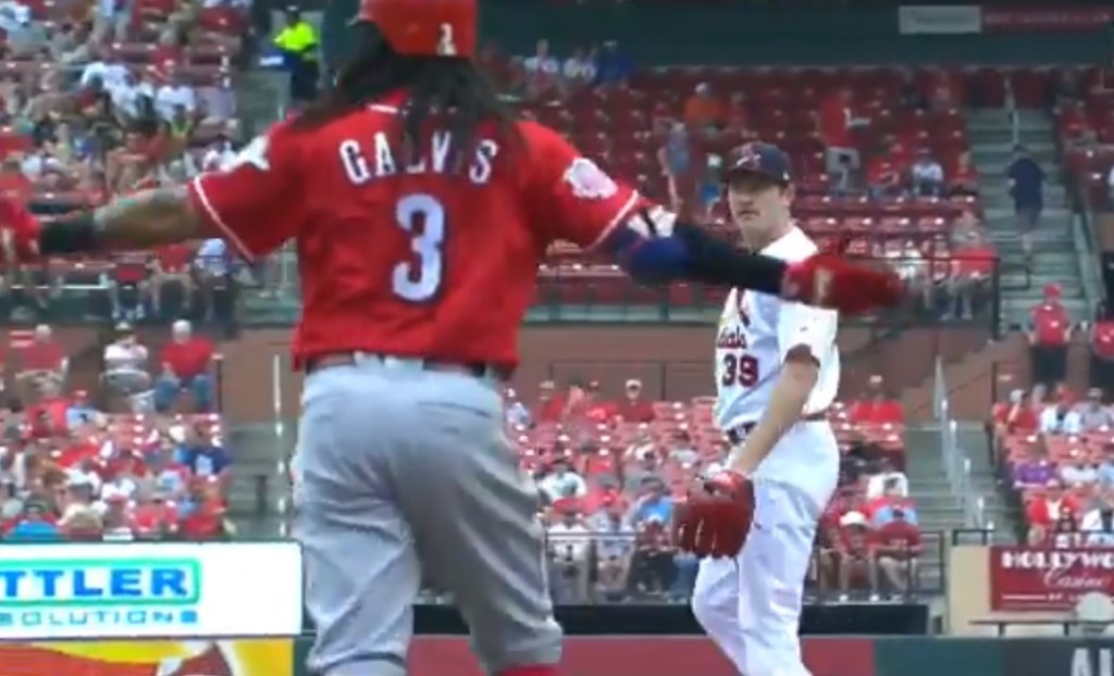 On Sunday, in the fourth inning of the first game of a doubleheader, St. Louis starter Miles Mikolas got Cincinnati’s Freddy Galvis to fly out to center field. It was nondescript: a routine flyball, the second out of what would be a three-up, three-down frame … until Galvis returned to his dugout. Rather than trotting around the mound, he jogged straight over it. It was, after all, in the middle of his straightest path of return.