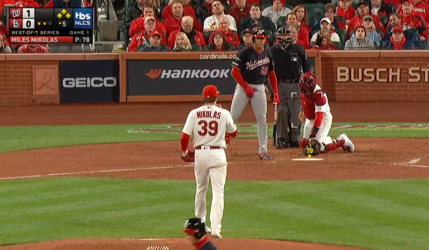 There are pitchers for whom such a display—and let’s be fair here: that was the Soto Shuffle on steroids—might inspire a retaliatory fastball. Whether Mikolas is among their ranks has yet to be seen, as, nursing a one-run deficit, the right-hander had no wiggle room with which to yield a free baserunner to the opposition. Instead, after wriggling out of a bases-loaded jam in the fifth inning, he grabbed his crotch right back at Soto.