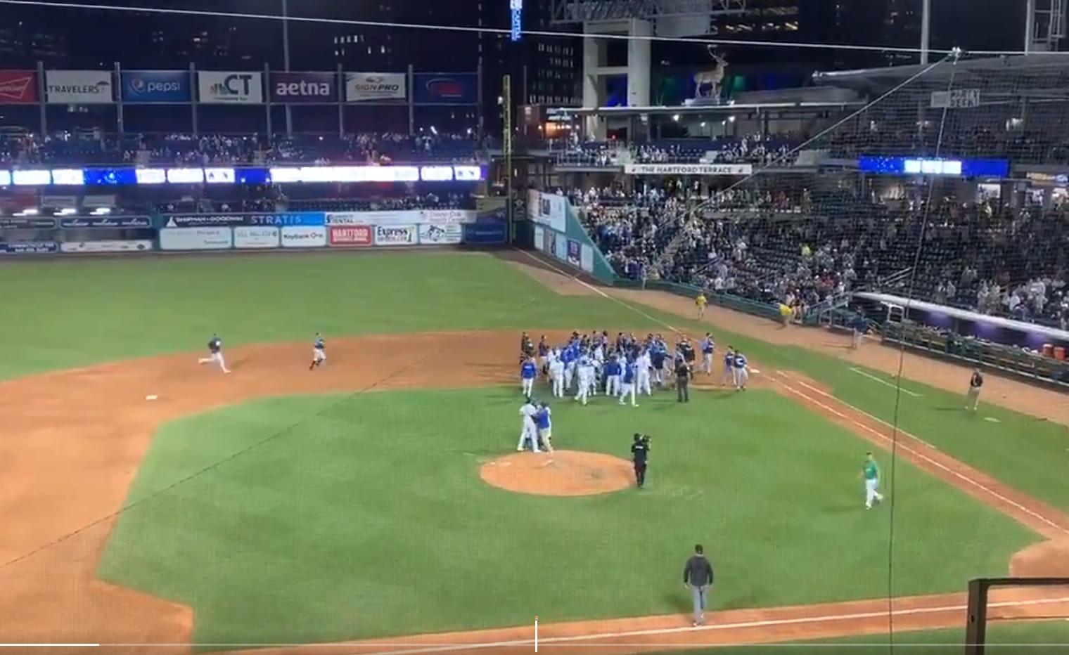 Bowden quickly got the remaining two outs, but his teammates were disgruntled to the point of wanting to fight, which led to a postgame infield scrum before the teams could decamp for their respective clubhouses. No punches appear to have been thrown.