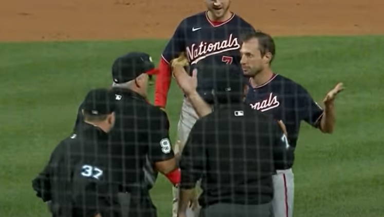 Joe Girardi asks the umps to check Max Scherzer for foreign substances in the middle of an inning.