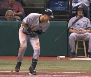 It was an 0-2 pitch from Tampa Bay’s James Shields that skipped on the ground in front of Posada’s feet. He hopped back, never indicating that the pitch did anything but hit him. The relative lack of outcry compared to the recent Derek Jeter incident could have also had to do with the fact that there were already two outs, Posada never scored, and the Yankees won handily anyway, 8-3.