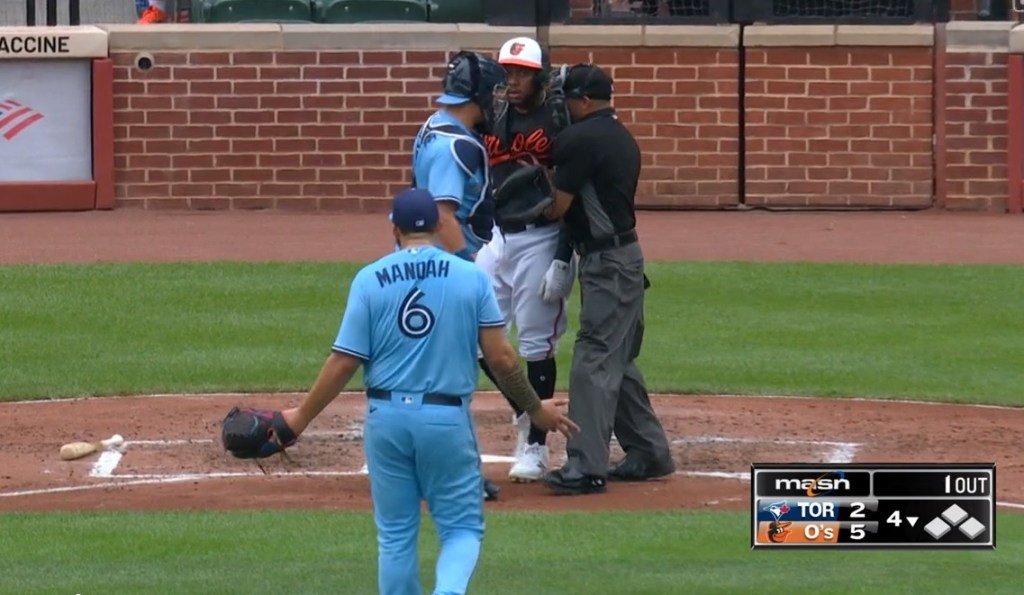 Once things settled, umpire Roberto Ortiz tossed Manoah. The decision to do so without prior warning allowed Baltimore a chance to respond in kind—there is zero chance that Ortiz will ever reveal whether this was intentional—which did not end up happening. Given Montoyo’s verbal combativeness during the dustup, this actually comes as something of a surprise.